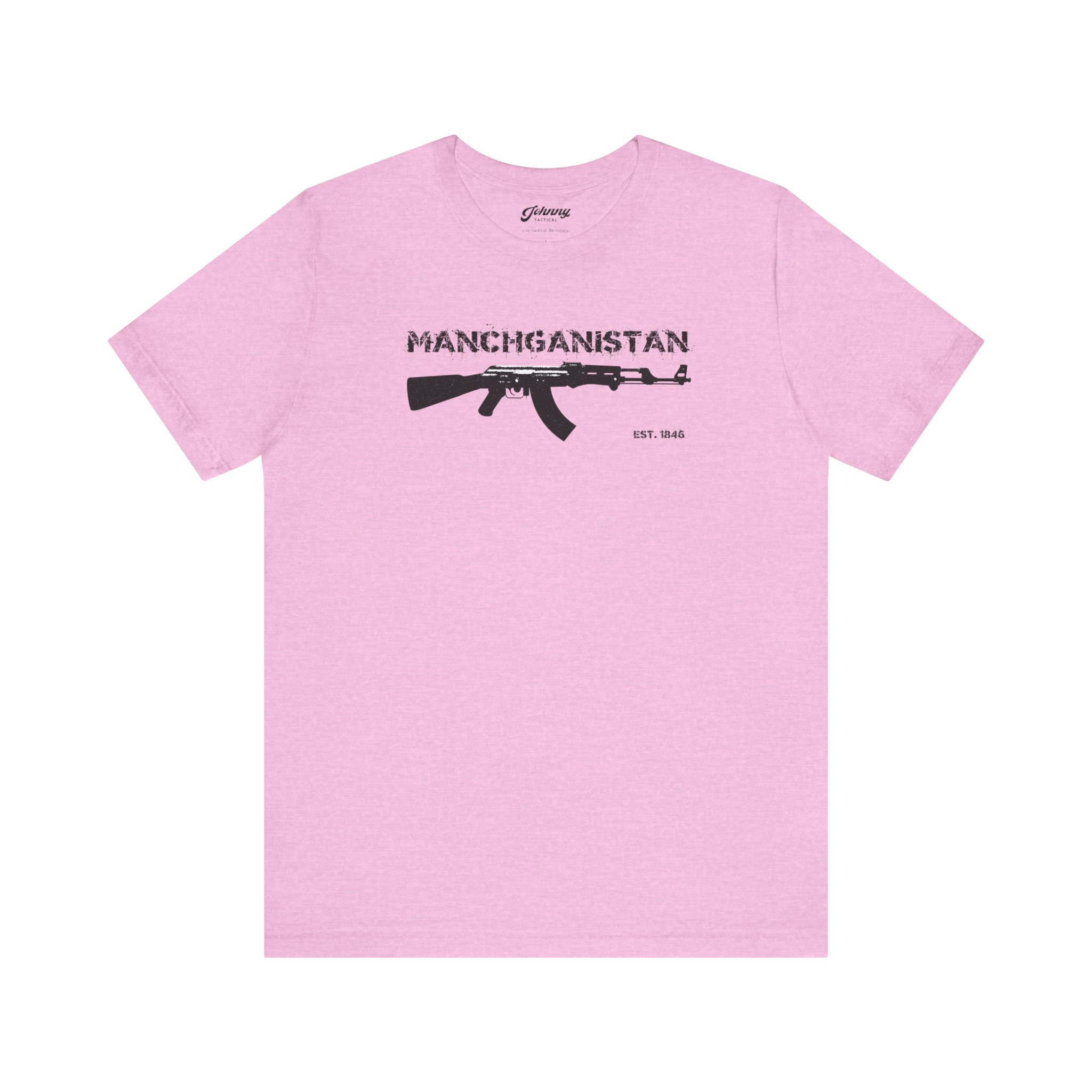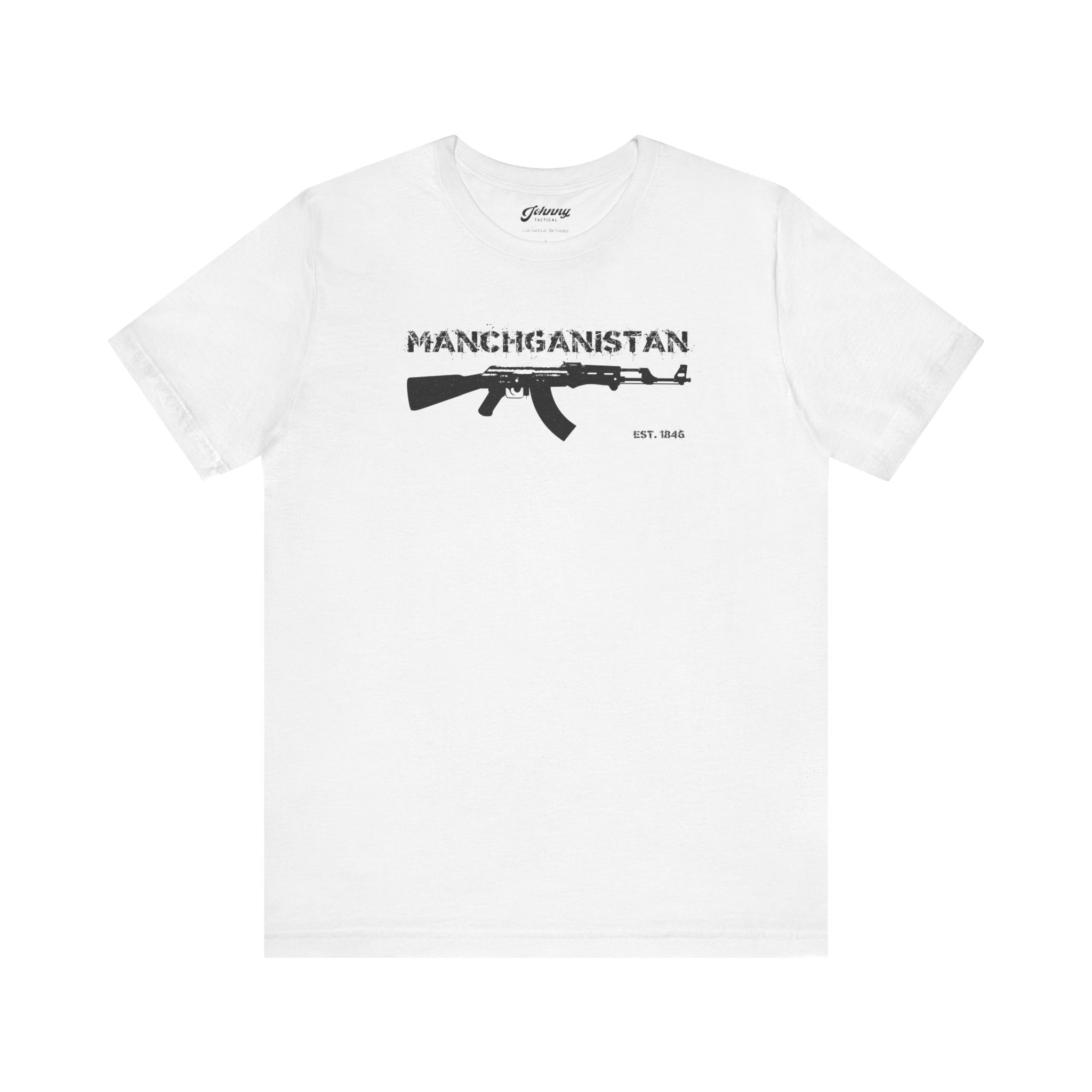 Manchganistan is a fictitious name for an actual place where bullets fly, people die, and truth is stranger than fiction. This shirt was specially designed for all the men and women in uniform who go out and do battle on the streets of Manchganistan and hold the line against the forces of evil day in and day out. This one’s for you.